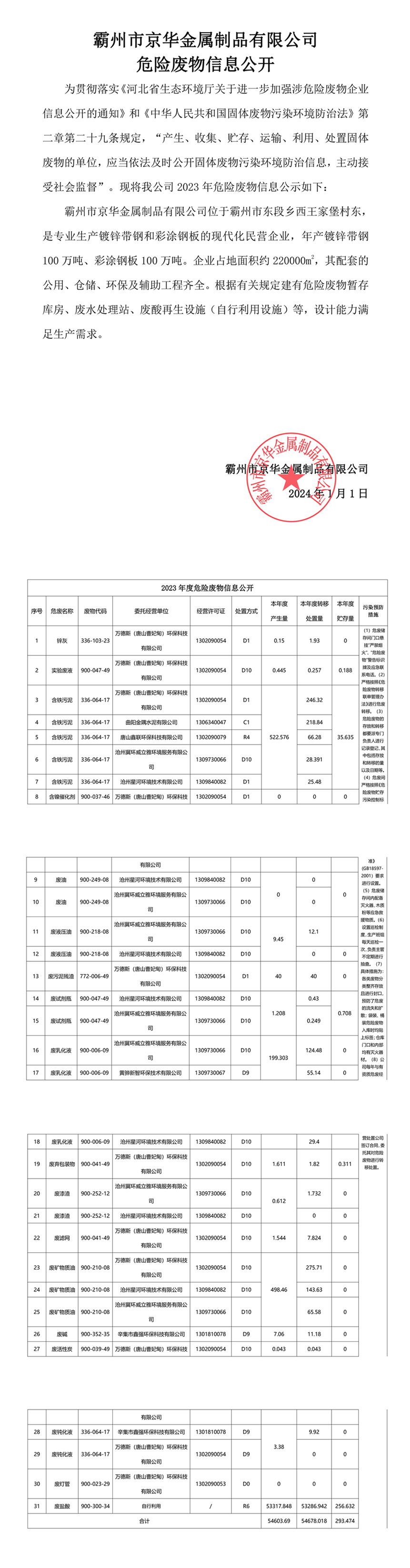 下一篇:24年1月危險廢物信息公開-霸州市京華金屬制品有限公司